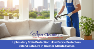 Don’t let stains, spills, or daily wear shorten the life of your furniture. Contact our professional upholstery cleaning and protection team in Greater Atlanta today to schedule a consultation. Keep your sofas, chairs, and other fabric furniture looking fresh, vibrant, and worry-free for years to come.